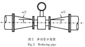 (12)當(dāng)管道內(nèi)流速偏低,工藝流量又較穩(wěn)定,為滿足儀表對(duì)流速范圍的要求,在儀表部分局部提報(bào)流速,可選擇流量計(jì)口徑小于工藝管道,并在流量計(jì)的前后加接異徑管。為了在安裝異徑管后不過多影響流場(chǎng)分布,不影響污水流量計(jì)的精度,要求異徑管的中心錐角α不大于15°,越小越好。這樣可把異徑管視為直管段的一部分。