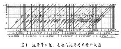 儀表口徑是根據(jù)管道內(nèi)平均流速而定的,通常選用與管道相同的口徑或略小些。一般工業(yè)輸水管道經(jīng)濟(jì)流速為1.5~3m/s,易粘附沉積結(jié)垢物質(zhì)則提高到3~4m/s或更高,礦漿等磨蝕性強(qiáng)的為2~3m/s。污水流量計(jì)量表的液體流速范圍可在1~10m/s之間選用。原理上,上限流速并沒(méi)有限制,滿度流量的流速下限一般為1m/s,有些產(chǎn)品為0.5m/s,低于此流速,從測(cè)量準(zhǔn)確度出發(fā)應(yīng)改用小管徑,以異徑管連接到管道。但加裝異徑管要注意壓力損失的問(wèn)題。圖1為流量計(jì)口徑、流速與流量關(guān)系的曲線圖,計(jì)算儀表口徑時(shí)可參照。