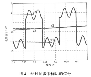 對于基線零點漂移,“正負(fù)差值法”是比較有效便捷的選擇,它不需要直接消除信號中的基線零點漂移,而是通過算法上去掉基線零點漂移對測量結(jié)果的影響。該系統(tǒng)中,激磁信號的頻率為6.25Hz,由于所測量的液體流速不會有明顯的突變,所以在信號的一個周期0.16s內(nèi),可以采用一個波峰減去波谷的均值來表示此時的流量信號,也即如圖3中|y4-y1|其中y4是從nT+T/4到nT+T/2采樣結(jié)果的算術(shù)平均值,y1是從到(n+1)T進行采樣結(jié)果的算術(shù)平均值。但是由于斜率零點漂移的存在,會出現(xiàn)如圖3中|y3-y2|的誤差,所以需要利用式(15)的結(jié)果對該誤差進行修正,修正后的結(jié)果也就是此時管道中液體感應(yīng)出的電動勢為:
