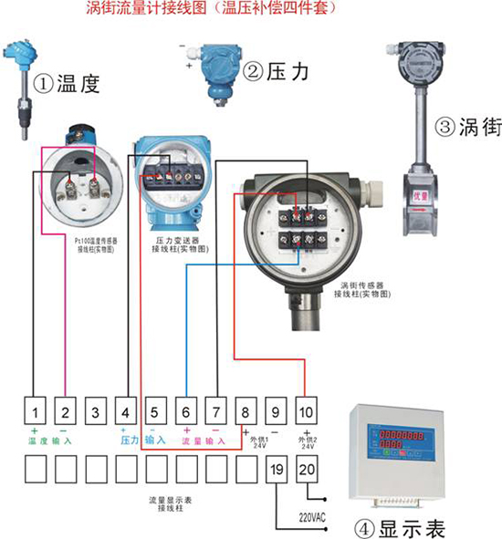 3、溫壓補償一體型帶有溫度、壓力傳感器,用于氣體流量測量可直接測量出氣體介質(zhì)的溫度和壓力,從而顯示氣體的標況體積流量。