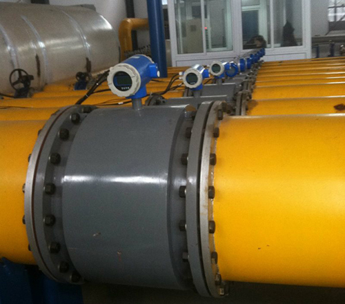 傳感器導(dǎo)管內(nèi)徑D是固定的,通過勵磁線圈的勵磁電流是恒定值時,磁感應(yīng)強度B也是恒定值,因此,平均流速V或流量QV(QV=лD2/4·V)與感應(yīng)電動勢UE的大小成正比例關(guān)系。