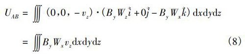 式中V為純水流量計(jì)傳感器測(cè)量空間;W→為權(quán)函數(shù)。在直角坐標(biāo)系(x,y,z)中,式(5)可以轉(zhuǎn)換為