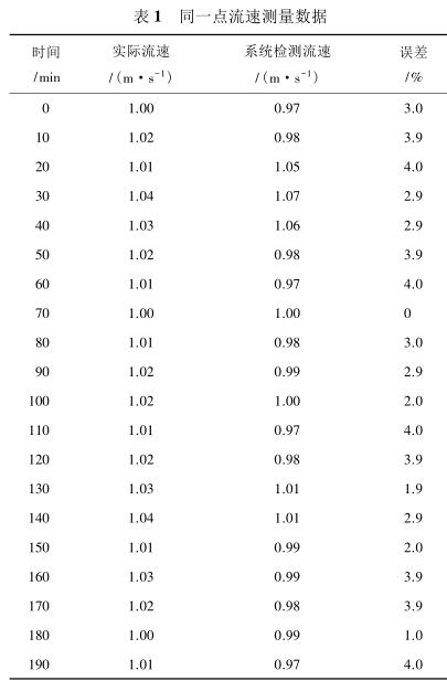 由表 2 測量數(shù)據(jù)可知,系統(tǒng)在測量低流速液體時(流速小于 1 m/s)誤差較大,達到 5%,當(dāng)待測液體的流速增大時(大于 1.4 m/s),誤差逐漸減小,基本維持在 3%以內(nèi)。由此可見系統(tǒng)具有較高的檢測精度,尤其是當(dāng)管道中的液體流速較高時,系統(tǒng)的檢測誤差不超過 3%,達到了設(shè)計預(yù)期。