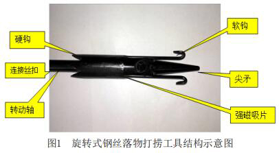 在注水井分層測(cè)試工作中鋼絲落物打撈一直是困擾采油測(cè)試工的一大難題,據(jù)不完全統(tǒng)計(jì)因井下落物而造成作業(yè)重配的注水、注聚井中絕大部分是鋼絲落物造成的,占總落物重配作業(yè)井?dāng)?shù)的50%以上。造成這一現(xiàn)象的主要原因是絲落物不容易被抓牢而且上提打撈到的鋼絲容易形成較大的鋼絲團(tuán),堵塞上提通道,造成二次落物,打撈失敗。因此,加工通用的有效的鋼絲落物打撈工具,制定合理的打撈方案是提高打撈鋼絲落物的成功率的關(guān)鍵。