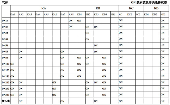 以上表值僅供參考,實(shí)際使用中因液體粘度和氣體密度不同應(yīng)在此值附近調(diào)整,頻率低時可將 K3 向大口徑方向調(diào)一至三檔。頻率高時可將 K2 向小口徑方向調(diào)一至三檔。
