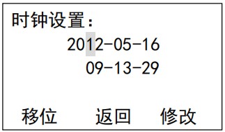 設(shè)置界面 13: 時鐘設(shè)置,校準當前運行的日期和時間,此參數(shù)出廠時已校準,設(shè)置影響記錄的保存和查詢,在運行前務(wù)必確認是正確的當前日期,如錯誤將造成記錄保存的混亂。