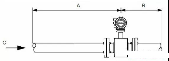 為了確保過程條件大幅度變化的情況下的規(guī)定精度,安裝傳感器時(shí),在電極平面上游留出至少五倍管徑長度的直管段,在電極平面下游留出至少兩倍管徑長度的直管段。