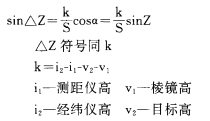 應(yīng)用(4)或(5)式,天頂距Z無(wú)需再加球氣差f(地球曲率和大氣折光差)改正?;駾m=S·sin(Z-f)=S·cos(a+f)(6)
