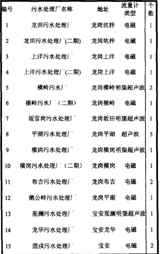 表1深圳市污水處理廠排污流量計(jì)統(tǒng)計(jì)
