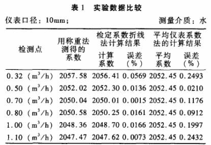 被檢儀表:公稱(chēng)通徑分別為10mm和15mm的渦輪流量傳感器各一臺(tái);檢定裝置:靜態(tài)稱(chēng)重法標(biāo)準(zhǔn)水流量檢定裝置,系統(tǒng)精度+0.2%。分別采用常規(guī)的平均儀表系數(shù)法和檢定系數(shù)折線法進(jìn)行標(biāo).定,并與作為標(biāo)準(zhǔn)的靜態(tài)稱(chēng)重法的檢定結(jié)果進(jìn)行比對(duì),結(jié)果見(jiàn)表1.表2。
