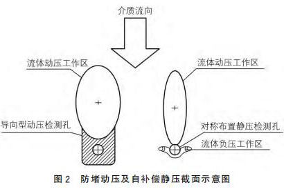 多點截面式防堵型衛(wèi)生渦輪流量計是基于動、靜壓組合測量原理,動壓測點產(chǎn)生高于管道介質(zhì)壓力的正壓,而靜壓測點產(chǎn)生低于管道介質(zhì)壓力負(fù)壓,二者組合后可實現(xiàn)增壓的目的,即差壓等于動壓的2倍。