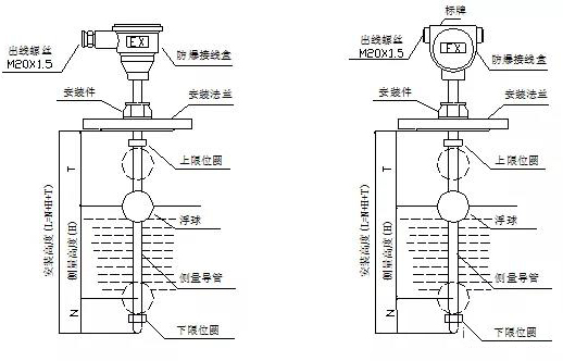 3、儀表須保持垂直安裝于浮球上下運動時不受妨礙的位置上,以保證浮球在主體管內(nèi)能上下運動自如。