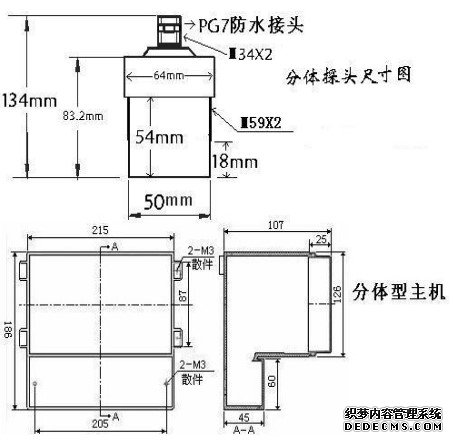 注:分體式超聲波液位計尺寸會根據(jù)型號的不同而有所改變,若有不同會預(yù)先告知。